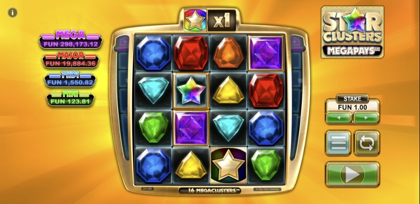 To play Star Clusters Megapays, simply spin the reels and try to match symbols across the grid to win prizes. The game features a cluster pays mechanic, which means that winning combinations are formed by landing clusters of matching symbols rather than traditional paylines.
